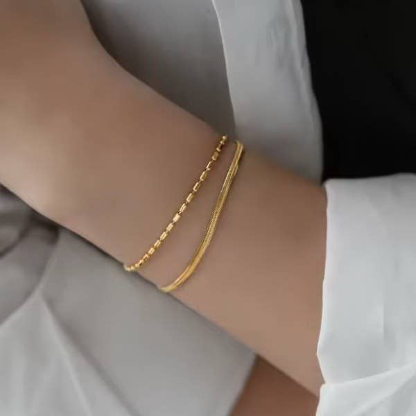 Thin Gold Bracelet with Rectangle Crystal Accents