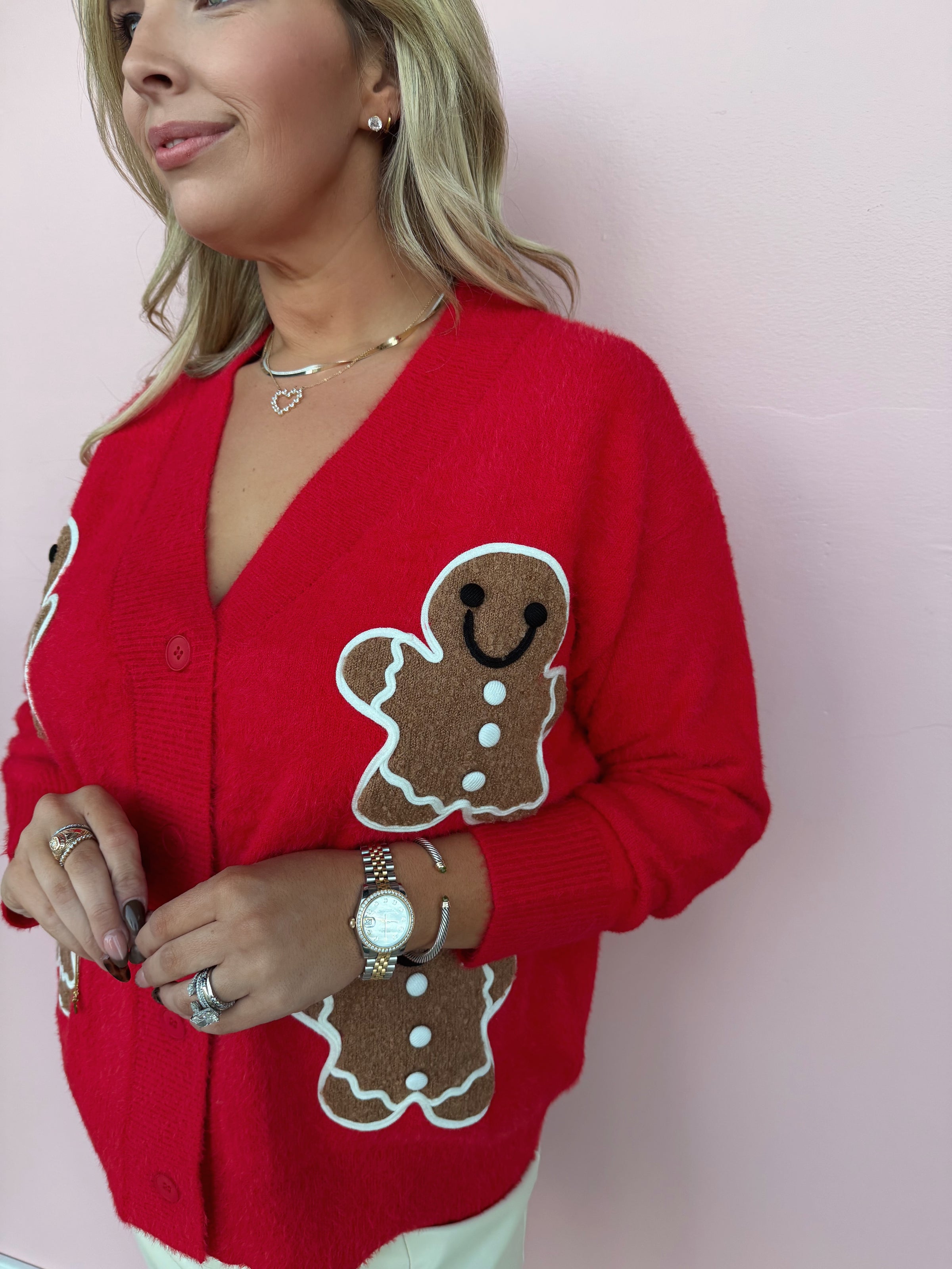 Get ready to sleigh the season in the Gingerbread Dreams Christmas Cardigan! This oversized, ultra-plush cardigan comes in festive hunter green or classic holiday red, complete with a sweet gingerbread design on the front for a touch of holiday magic. Soft, cozy, and perfect for layering, it’s your go-to Christmas cardigan for cookie decorating, holiday parties, or snuggling by the fire.