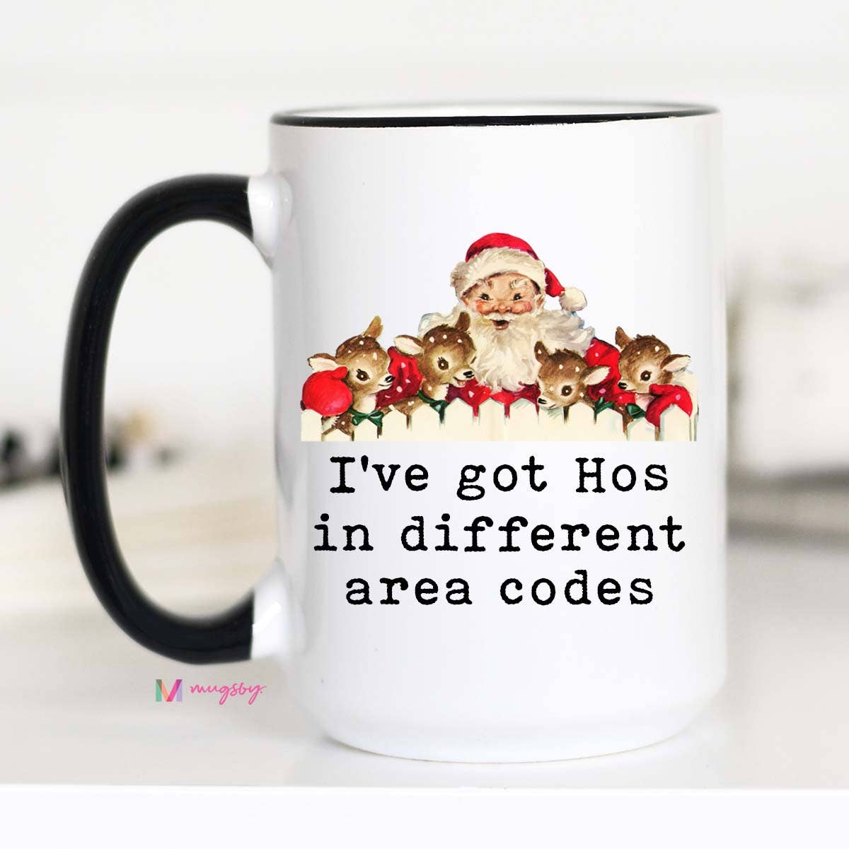 Double sided print. Top rack dishwasher safe. Microwave safe.. Off white with a black rim and handle. Made of ceramic.