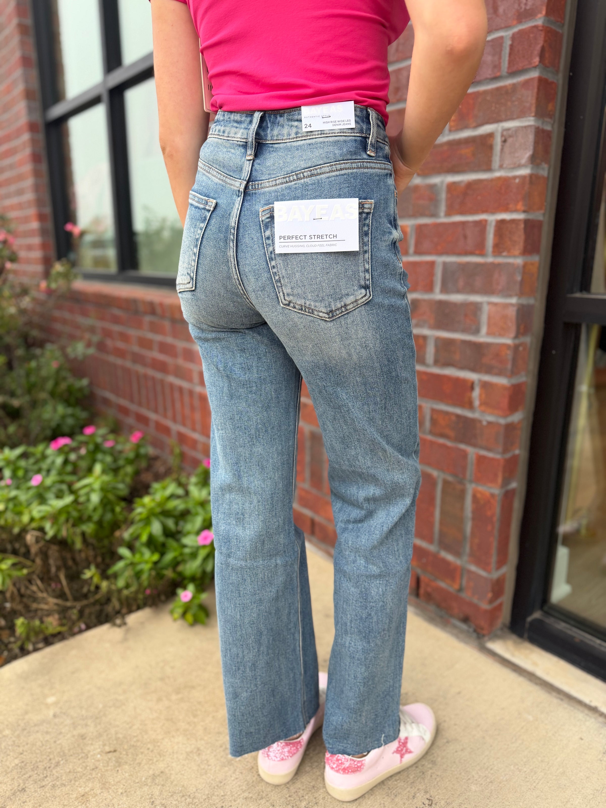 The Rachel Jeans are your new everyday denim staple with just the right amount of stretch. Designed with a flattering high-rise waist and an easy wide-leg silhouette, these jeans hug comfortably through the waist and hips while flowing effortlessly through the leg.