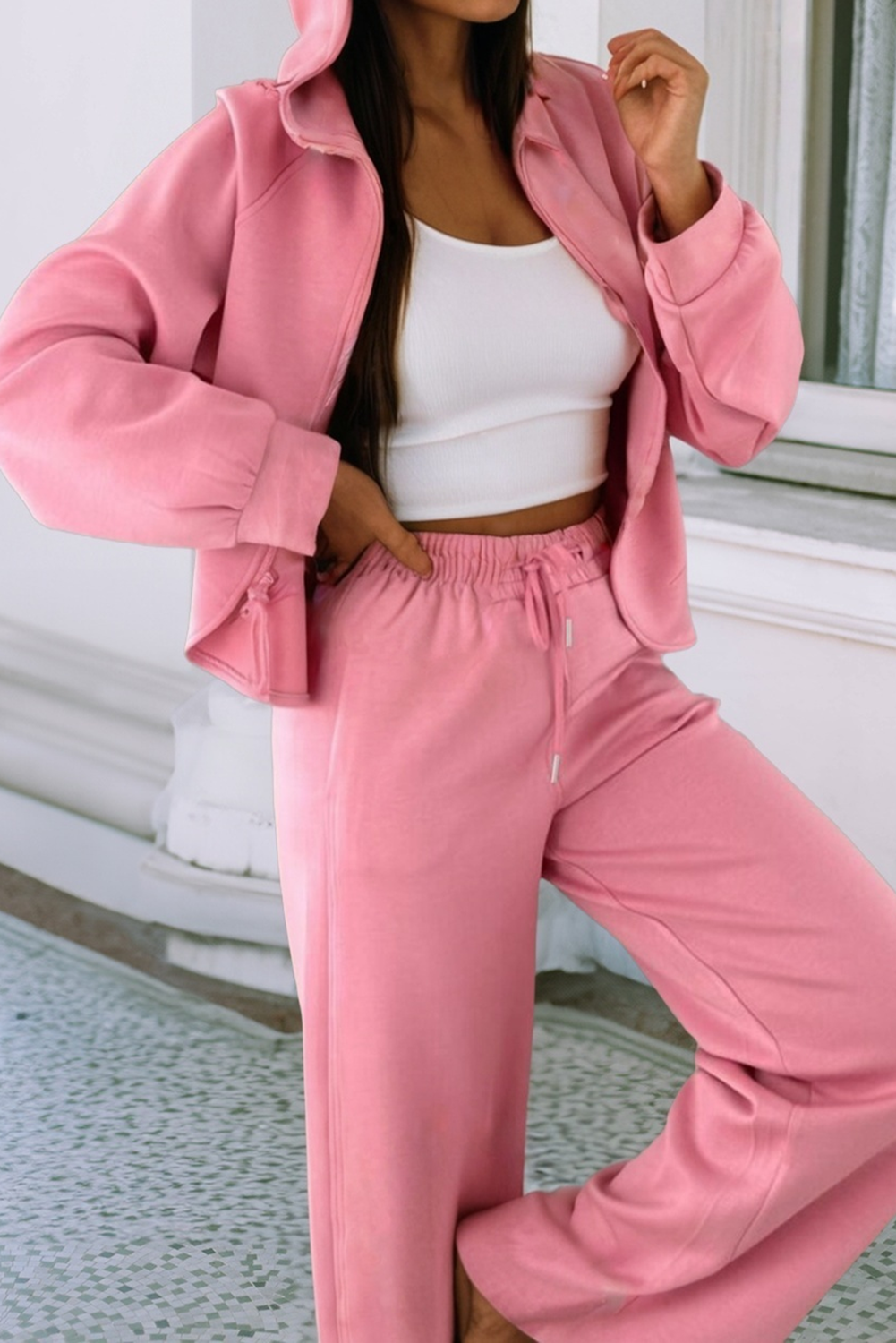 Meet your new obsession — the Bubble Bliss Scuba Set, a buttery-smooth matching moment that blends effortless comfort with that girly, elevated vibe. The structured scuba fabric gives you a sleek silhouette while still feeling cloud-soft, and the curved hem zip hoodie adds a chic twist you won’t find anywhere else. From school drop-off to boutique runs to cozy nights in, she’s your new go-to.