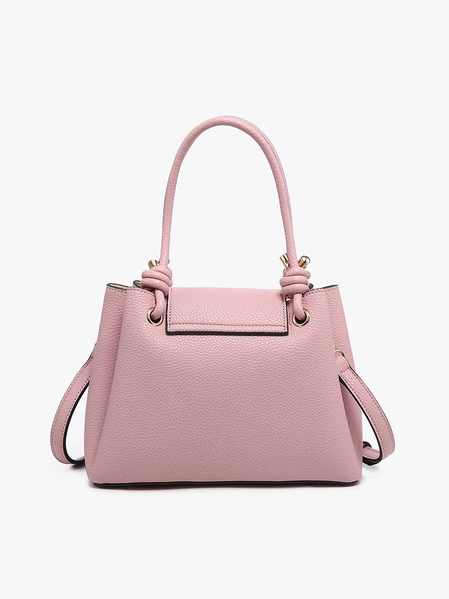 Zoey -Three-compartment crossbody with twist-lock -Twisted dual handles -Inner zip compartment -Adjustable/removable crossbody strap -Gold-tone hardware -Vegan leather Dimensions: -Length: 10.5 inches -Height: 8 inches -Depth: 4 inches