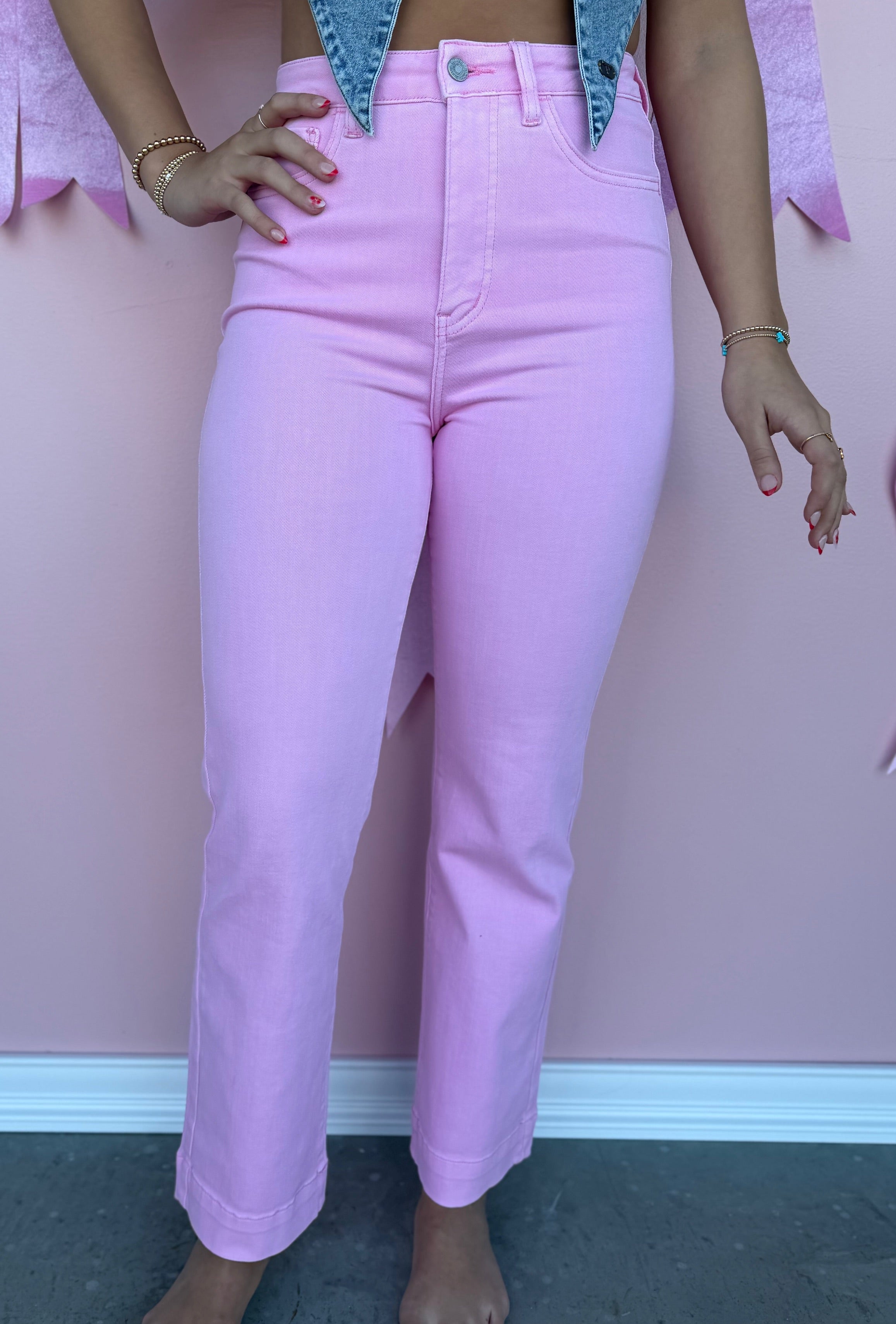 Payton Pink Jeans deliver a modern take on classic denim with a flattering straight-leg silhouette. Crafted with substantial stretch fabric, these jeans move with you throughout your day while maintaining their shape and structure. The soft pink hue offers versatility—dress them up with heels or down with sneakers for effortless styling. Whether you're looking for everyday comfort or a statement piece, these jeans combine quality construction with the flexibility you need.