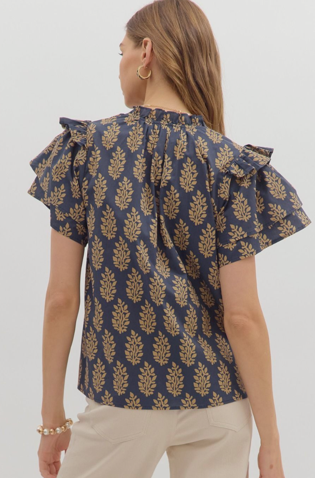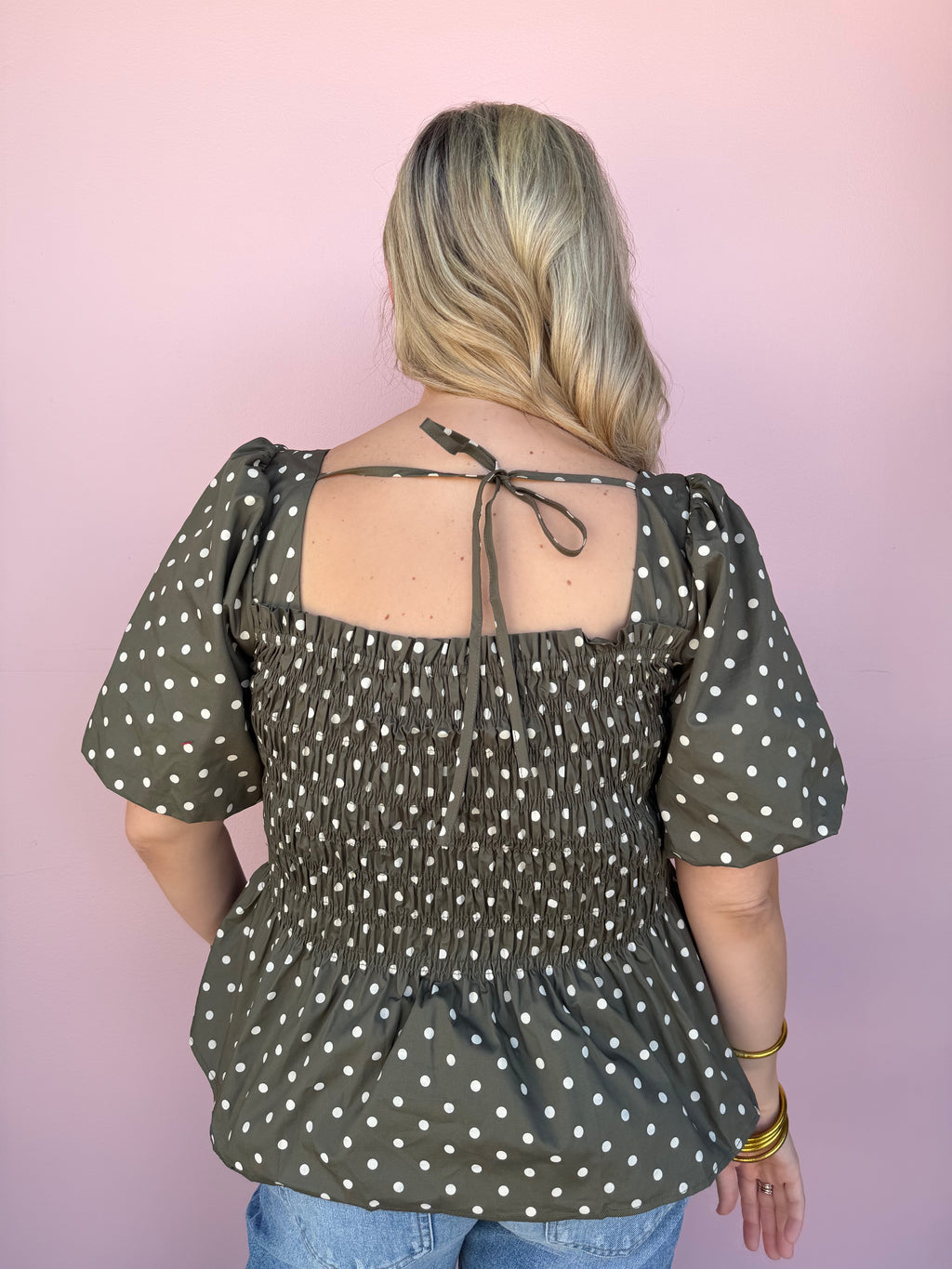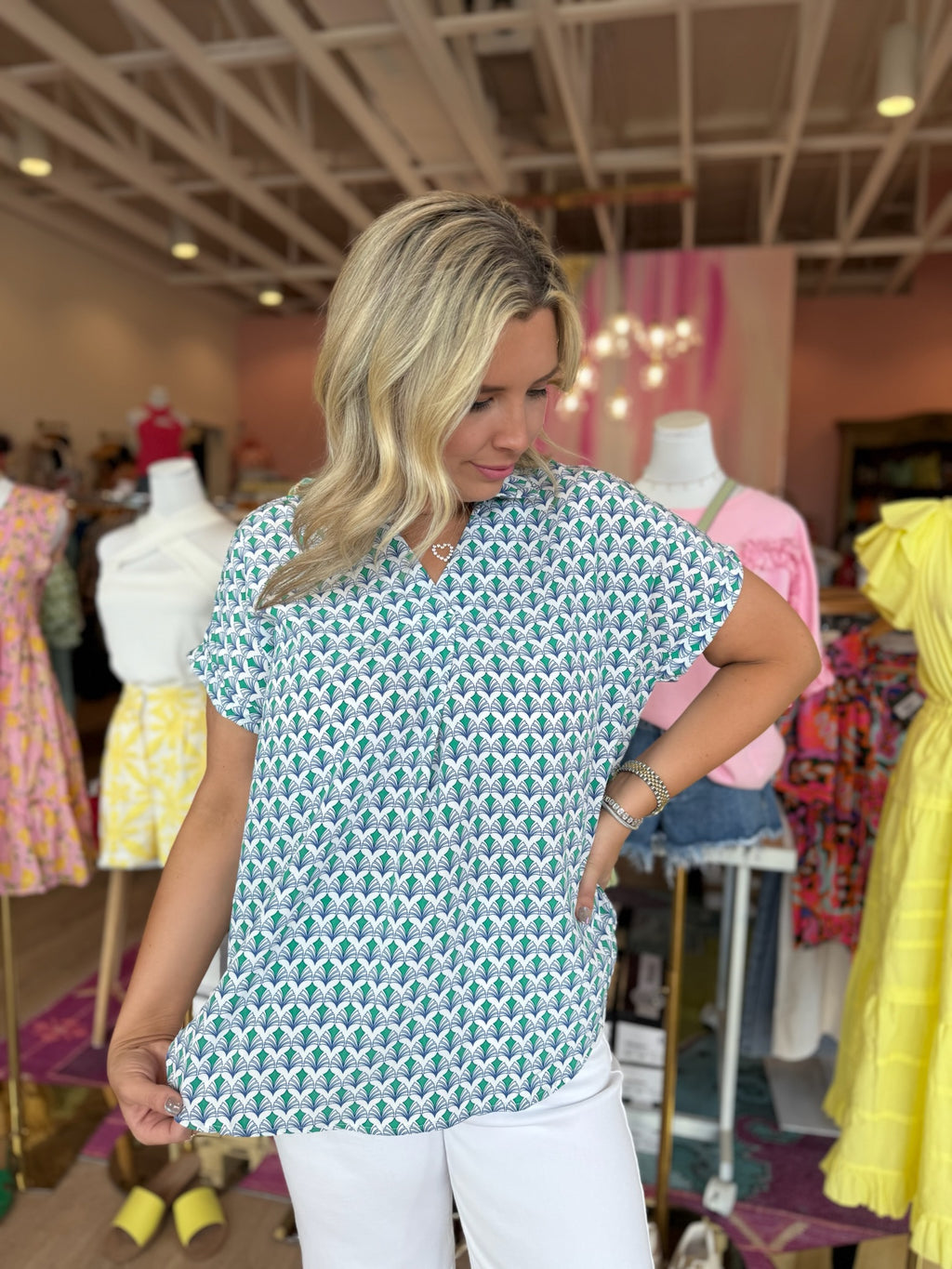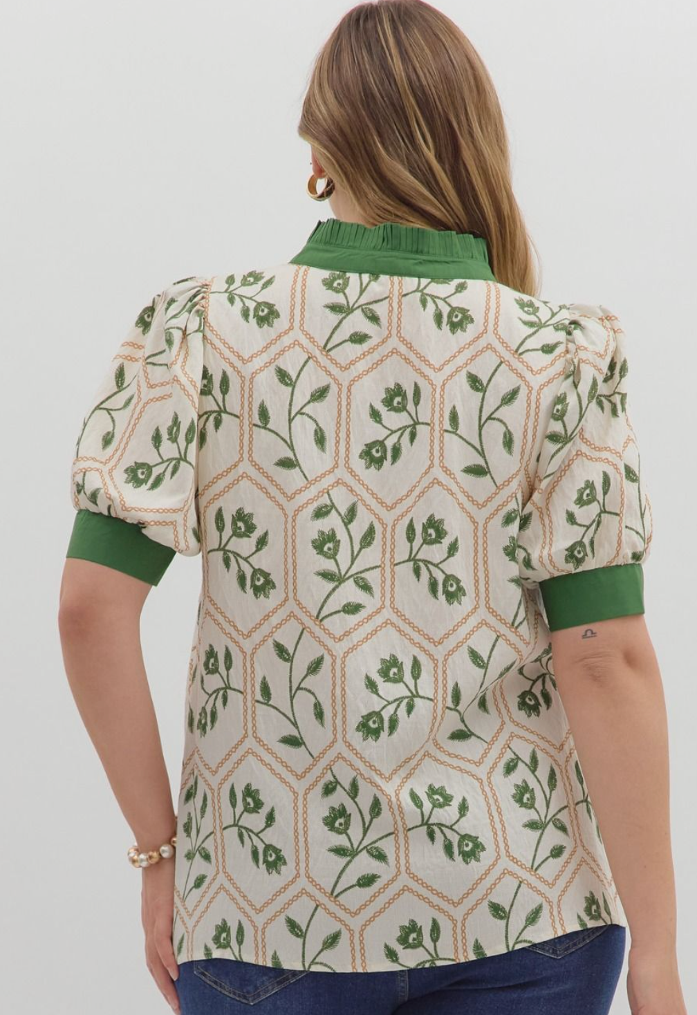 Garden Gate Puff Sleeve Blouse – Green Floral Print