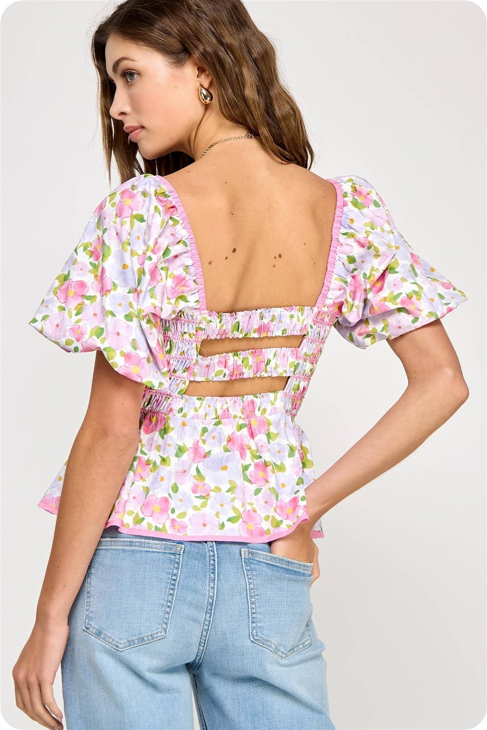Wildwood Bloom Puff-Sleeve Sweater Top