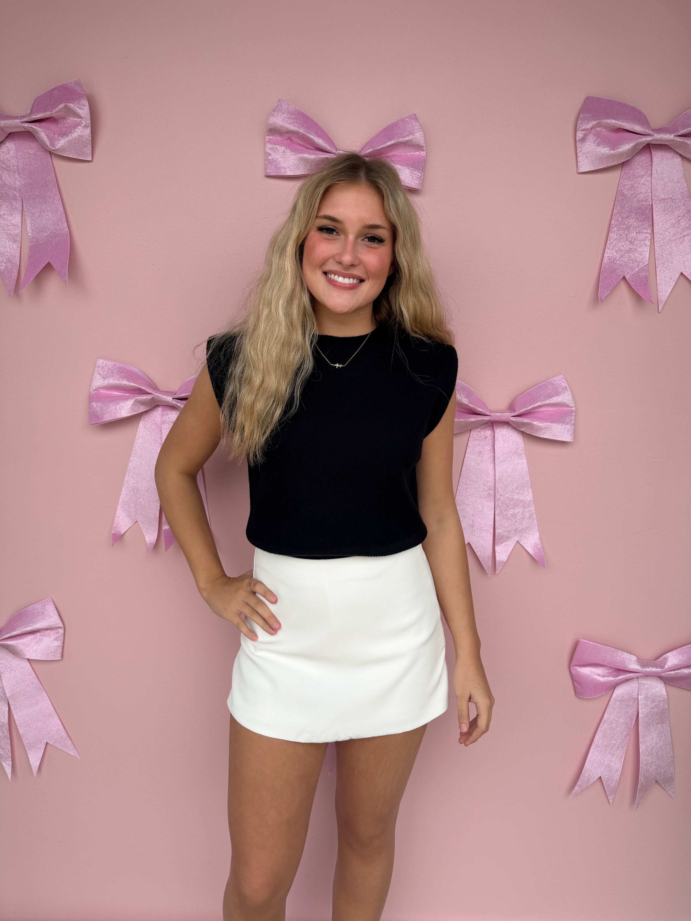 The Clean Slate Mini Skort features a sleek, tailored look with the comfort and confidence of built-in shorts. Designed with a clean silhouette and a discreet side zipper, this white mini skort is perfect for dressing up or down all season long.