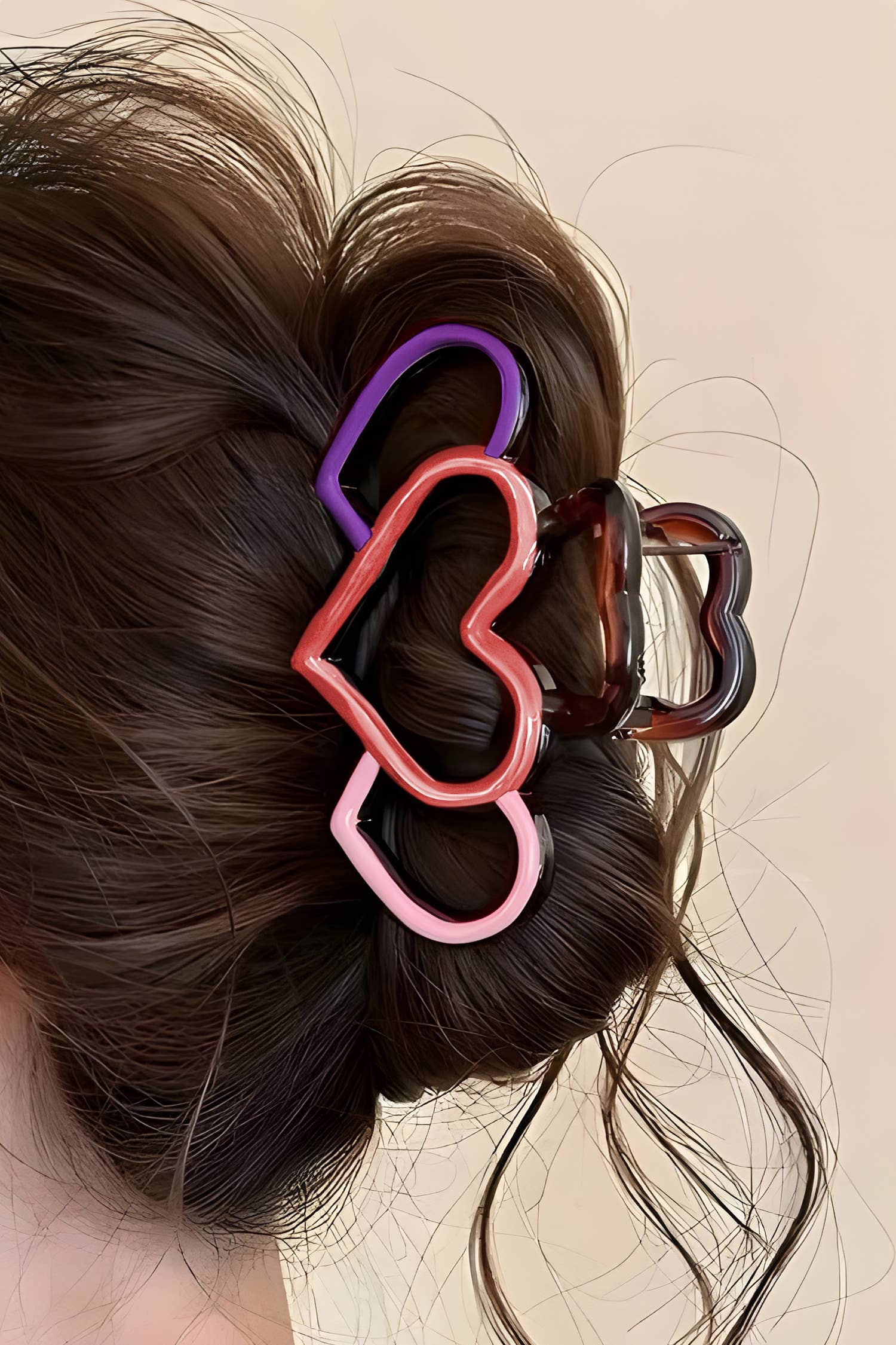 Item LDC Heart Design Color Contrasted Valentine's Day Acrylic Hair Claw Clip Material 100%PMMA Style Casual Pattern Heart Occasion Daily Season S/S 💖 Hollow heart claw clip elevates your hairstyle. 🌈 Vibrant colors add playful charm. ✨ Durable, lightweight acrylic construction. 👗 Perfect for daily looks and outfits.Â