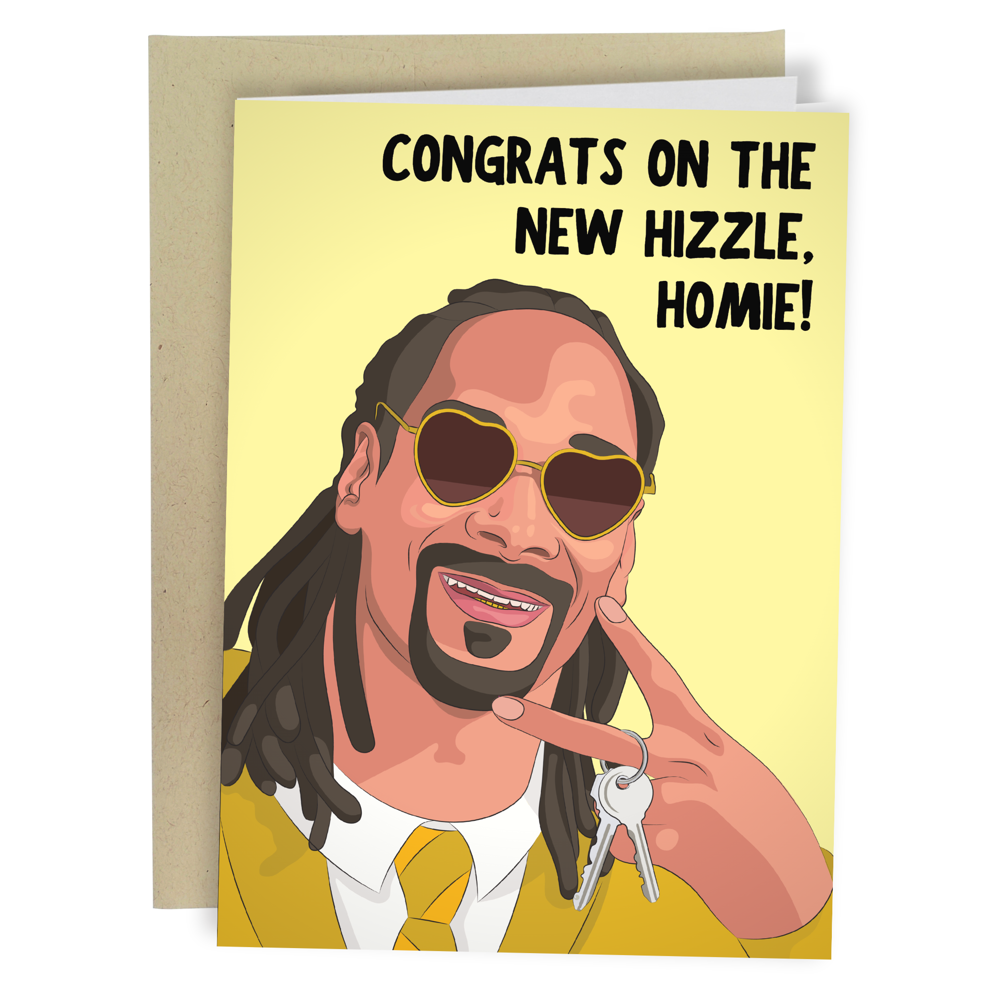 Featuring an illustration of the famous rapper, this funny card is perfect for new home owners. Made from sturdy card stock and coated with a matte finish, this card offers a beautiful texture and high-quality feel. The card is left blank on the inside. - Blank Inside - Printed in Colorado, USA onto a paper matte stock. - Large 5 x 7 inch greeting card - Printed on thick, durable cardstock for a high-quality finish - UPC barcode on back of card - Packaged and sealed in reusable clear plastic sleeve - Includes 1 kraft brown envelope made from 30% Post-Consumer Waste recycled paper