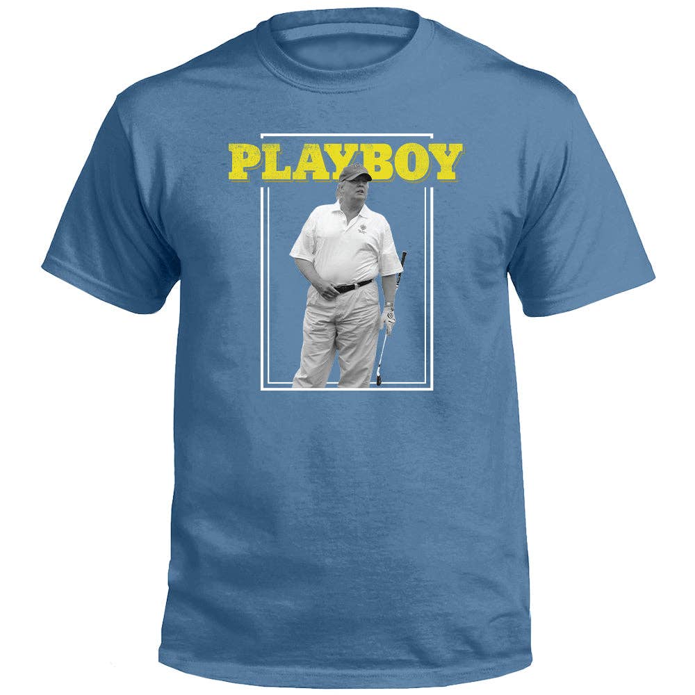 This steel blue men's graphic t-shirt features a bold front design showcasing Donald Trump alongside the iconic Playboy logo. Crafted for comfort and style, it’s perfect for making a striking statement while enjoying a soft, breathable fit. Ideal for casual wear, this tee combines contemporary graphic appeal with a unique blend of pop culture elements.