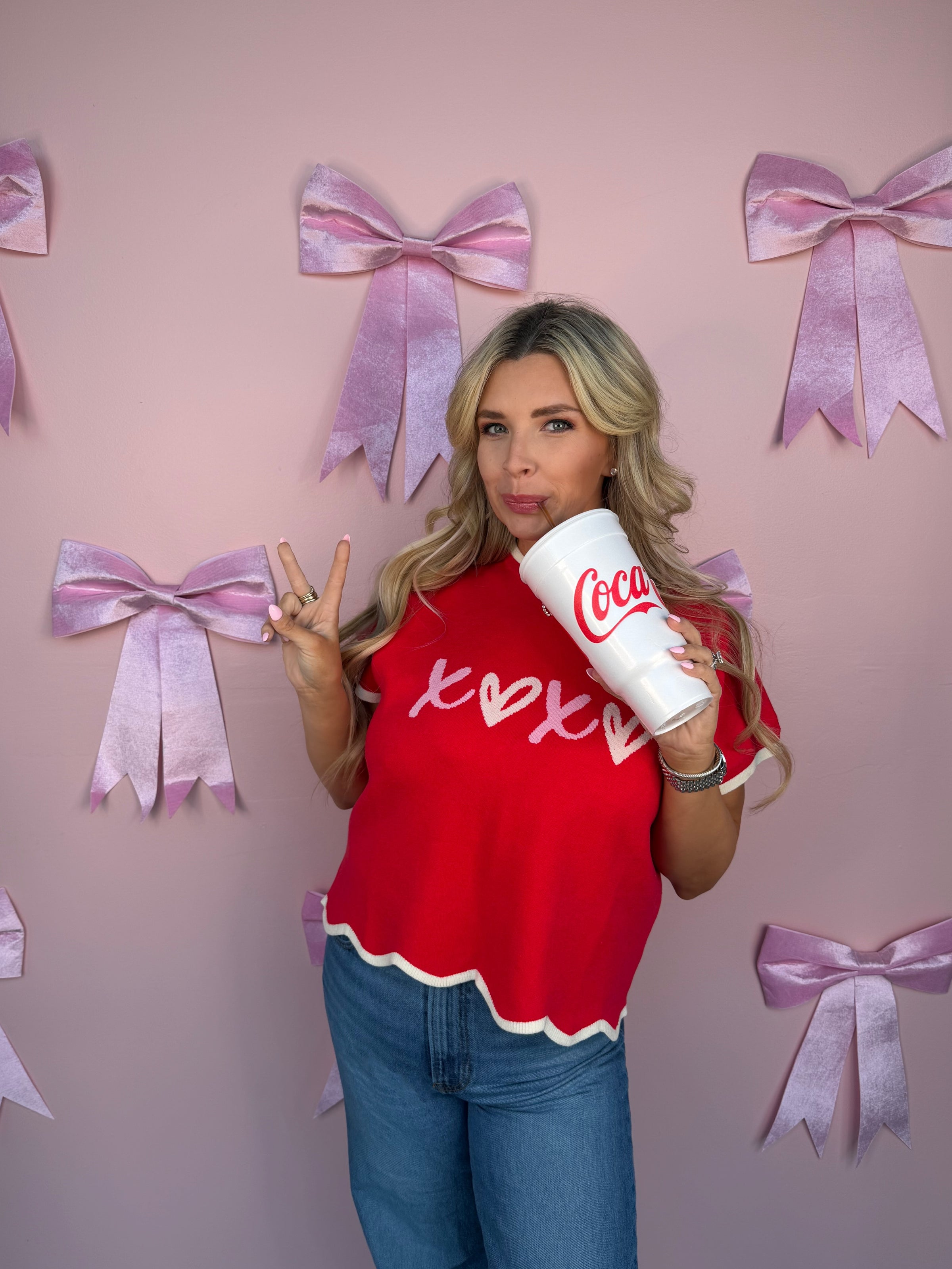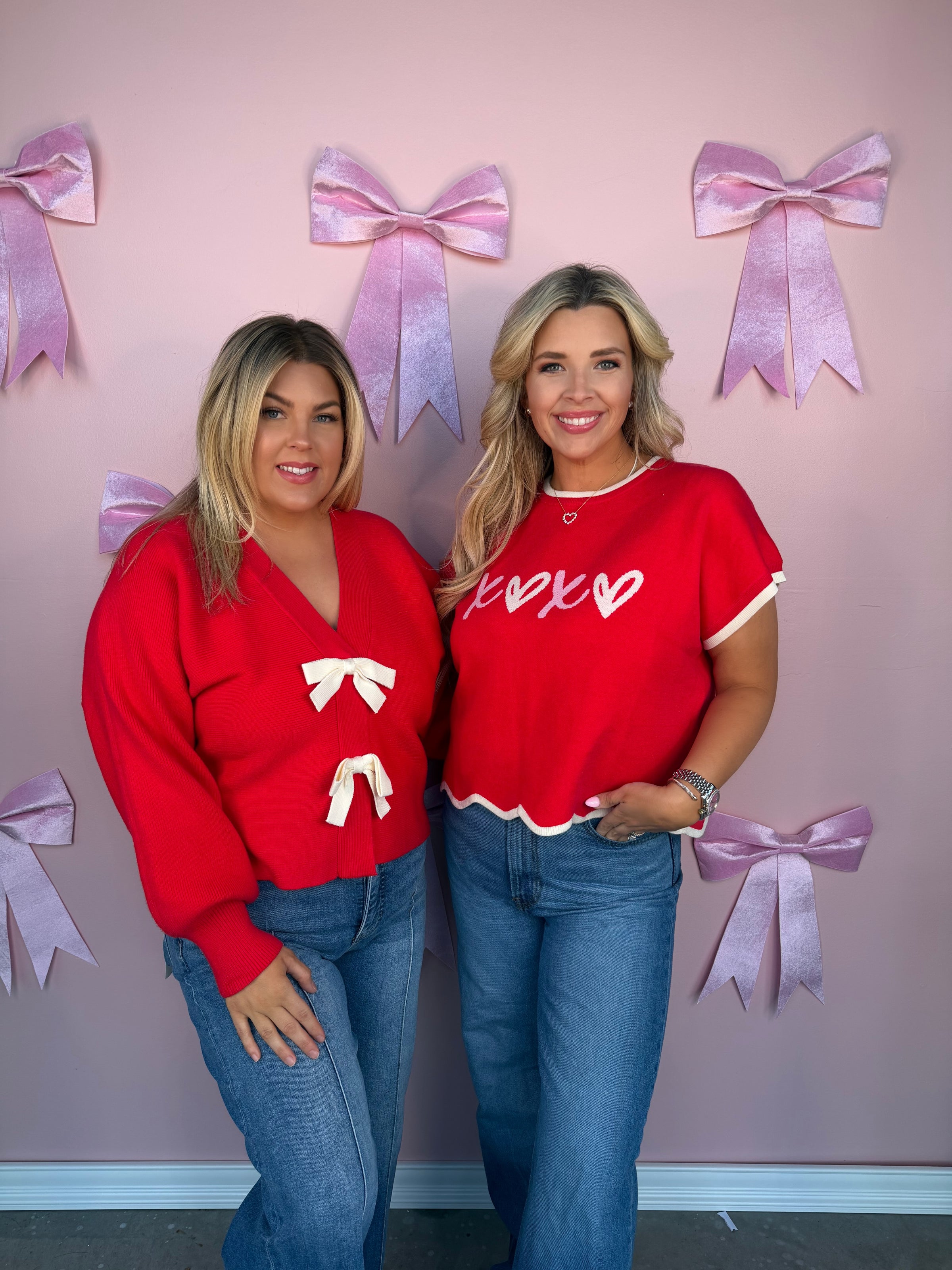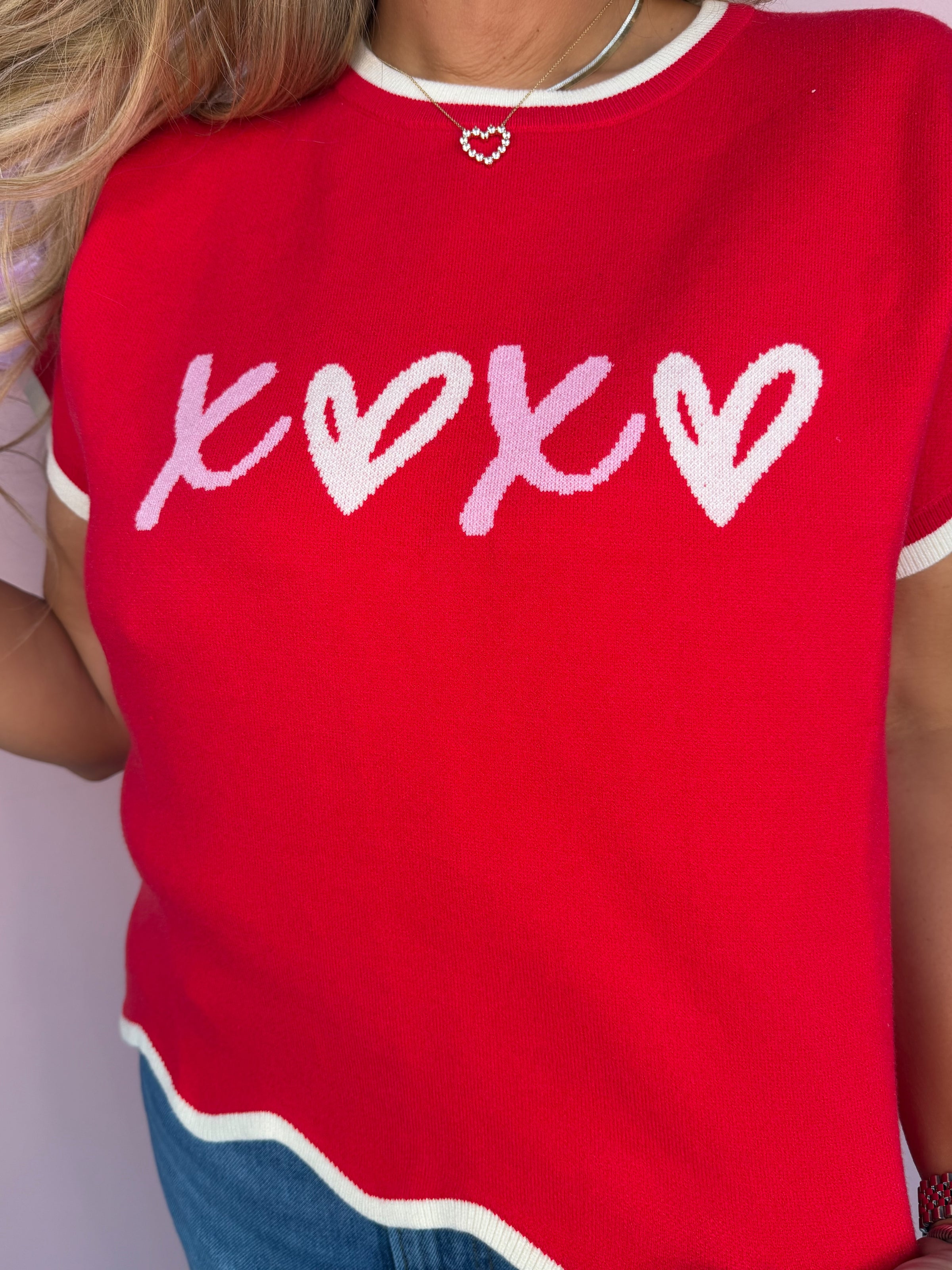 Sweet, simple, and oh-so-cute, the XOXO Darling Knit Top is the perfect way to wear a little love every day. This vibrant red knit features an embroidered XOXO detail across the front with soft contrast trim at the neckline, sleeves, and hem for a playful finish. Lightweight with a relaxed fit, it’s easy to dress up or down for Valentine’s Day, date night, or casual days when you still want something special.