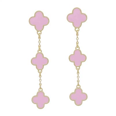 Sweet, feminine, and effortlessly chic. These pink clover drop earrings feature a soft blush enamel with gold trim for a polished, boutique-perfect look. Lightweight with just the right amount of swing, they’re ideal for everyday wear, brunch dates, or adding a pop of girly charm to any outfit.